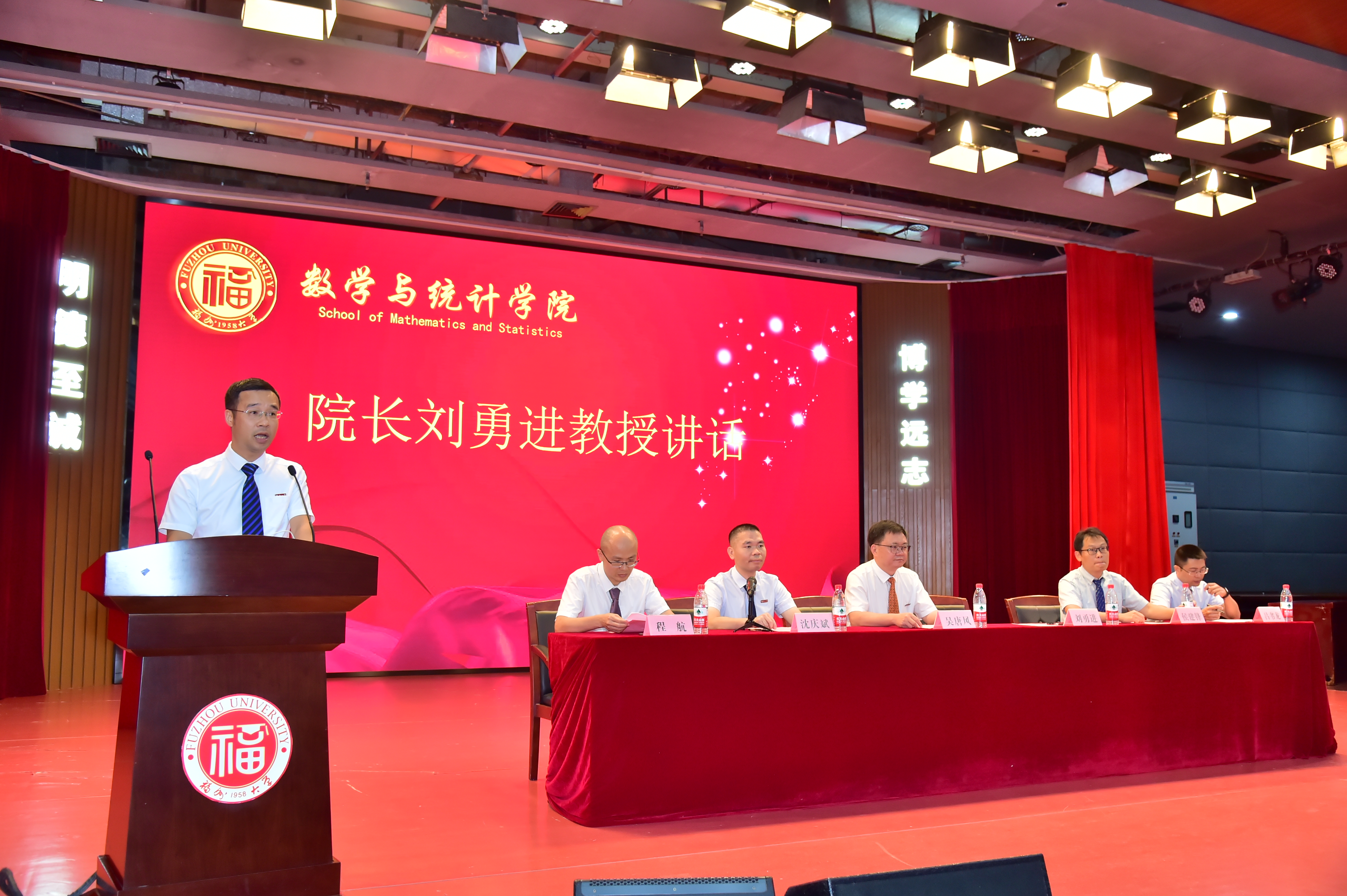 典礼结束后,院长刘勇进教授为新生上了入学教育开学第一课。课上,他围绕三个问题展开:在福大数统学院为什么学,学什么以及怎样学?