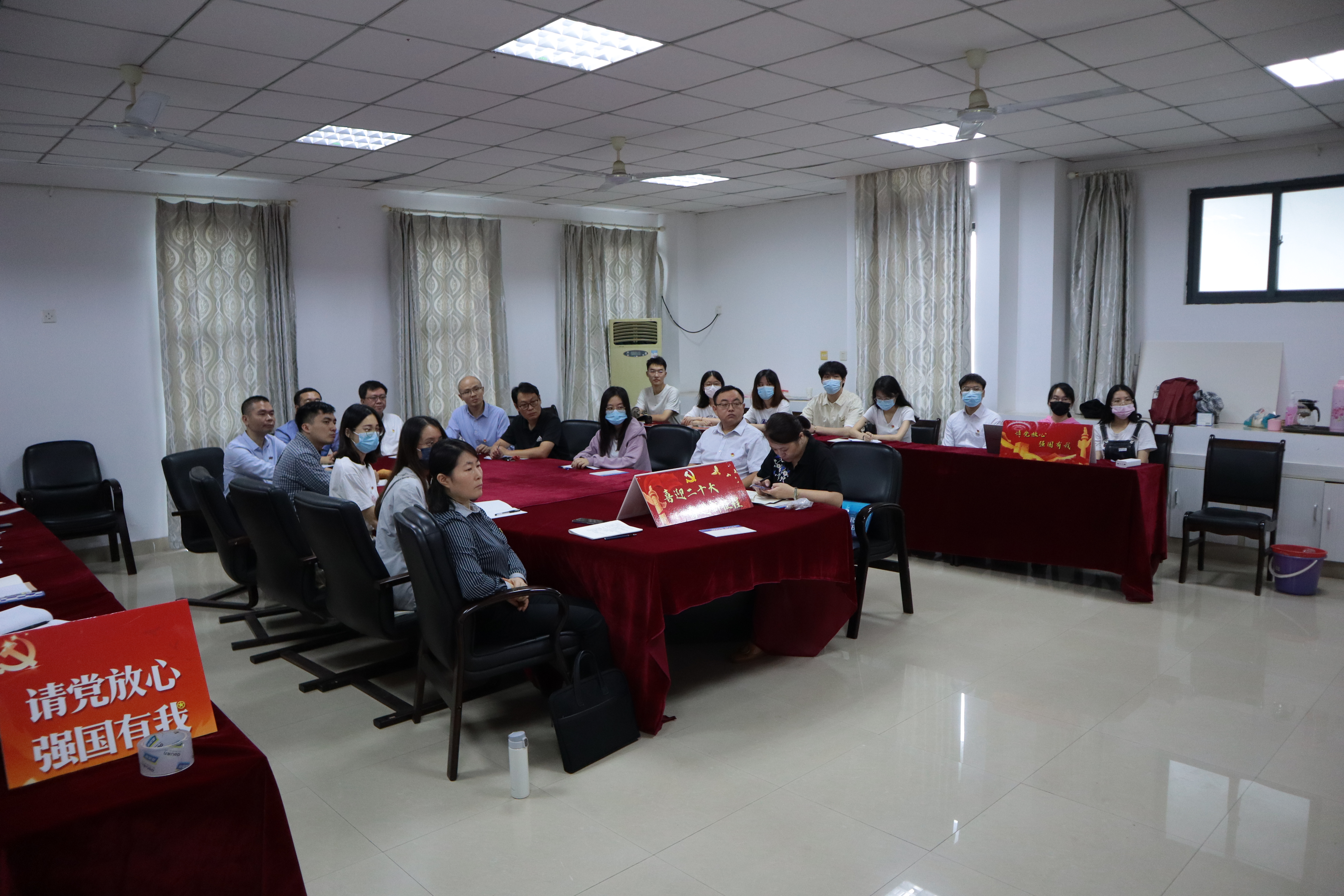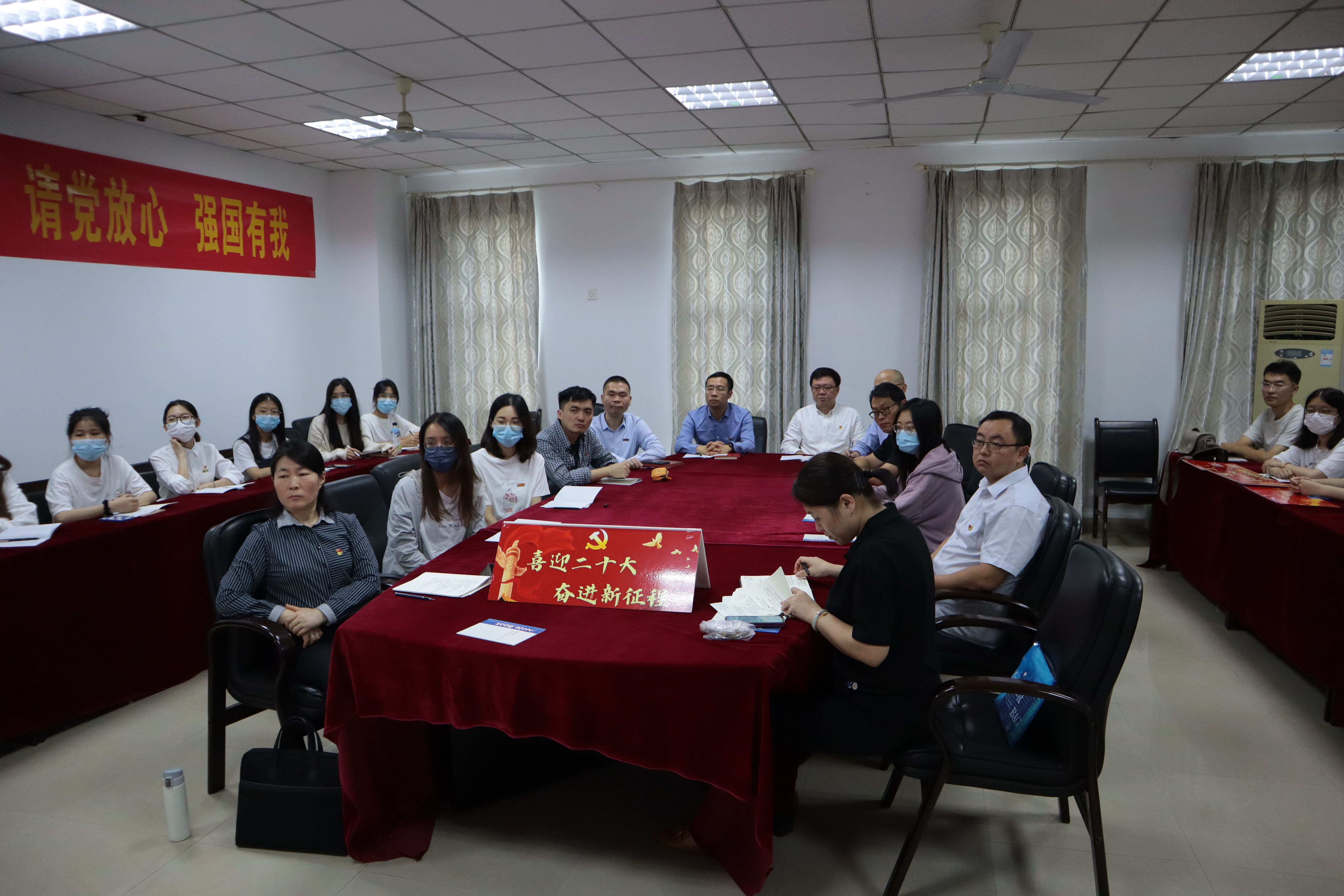 上午10:00,院党委领导班子、教工党支部书记、学工办辅导员和学生党支部书记在学院A408会议室集中收看大会开幕直播。学院团委还精心组织基层团支部和团员青年采用多种形式认真收听收看,热烈交流研讨学习习近平总书记报告的心得感想。