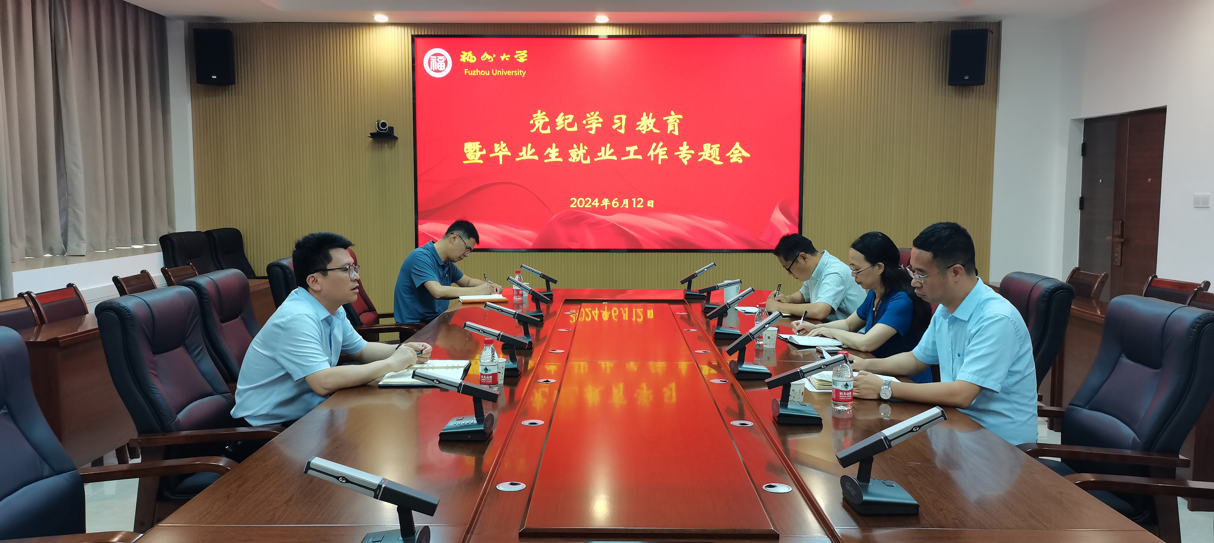 为贯彻落实学校党委关于持续推动党纪学习教育走深走实以及促进毕业生高质量充分就业的精神,6月12日下午,郭文忠副校长到数统学院召开党纪学习教育暨毕业生就业工作专题会,学院党政班子成员参加本次专题会议。