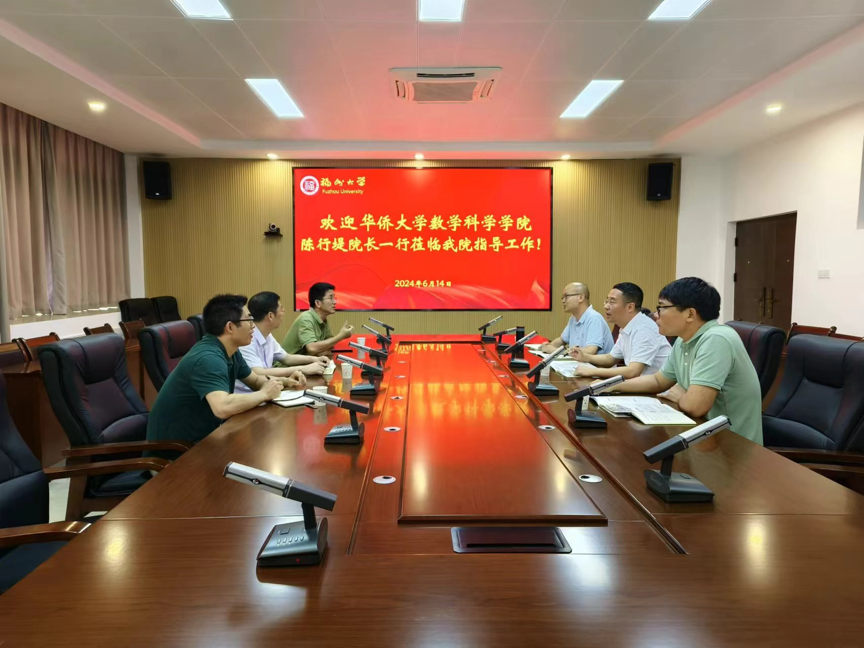 6月14日上午,华侨大学数学科学学院院长陈行堤、副院长汤龙坤、数学与应用数学系主任林增强一行来到寸止挑战 调研与交流,学院院长刘勇进、副院长程航、院长助理曾庆厚参加了座谈会。
