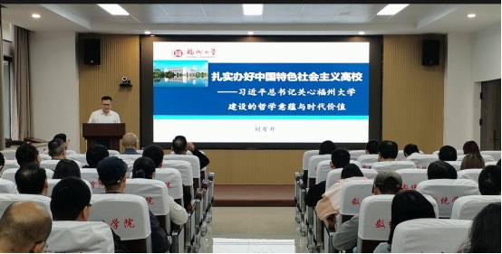 建设的哲学意蕴与时代价值》为题,围绕14次关怀福大的总体回顾、重要论述精神的哲学意蕴、重要论述精神的时代价值等三个方面,阐释了习近平在福建工作时期从高校办学职能出发,强调了突出人才培养、夯实科学研究、做强社会服务、激活文化传承创新;习近平对寸止挑战