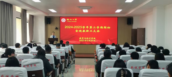 2月27日下午,数统学院在院208报告厅召开2024-2025学年第二学期期初教职工大会。会议由院党委书记郑世珠主持,全院教职工参加。