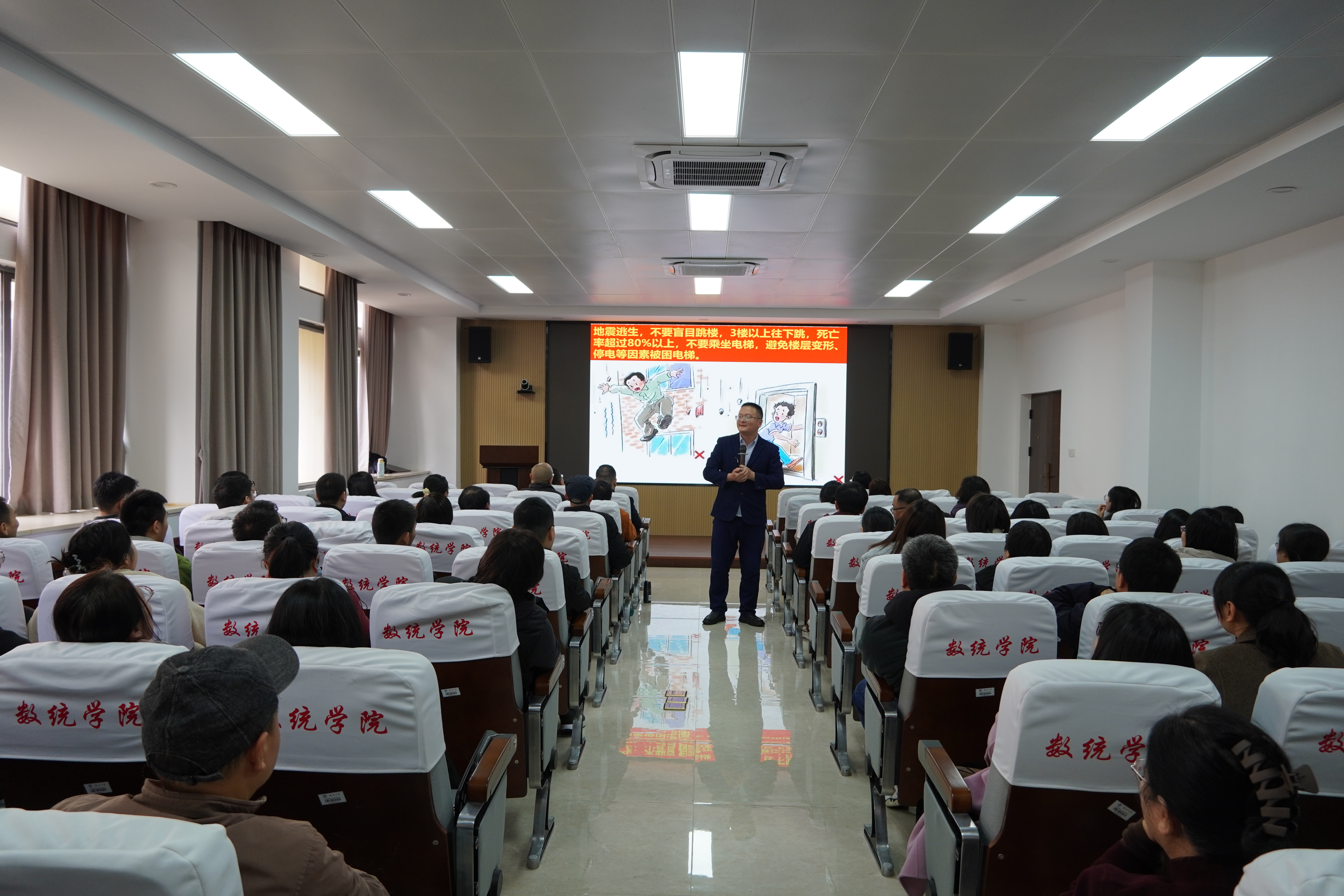 会后,结合学校“开学第一课”实践教育的通知要求,学院邀请了福州民安消防的黄安军讲师举行安全知识专题讲座,并实地开展了应急疏散演练。通过此次安全演练,不仅增强了全院教职工的地震、消防安全意识和自我保护能力,也为创建平安校园奠定了坚实基础。
