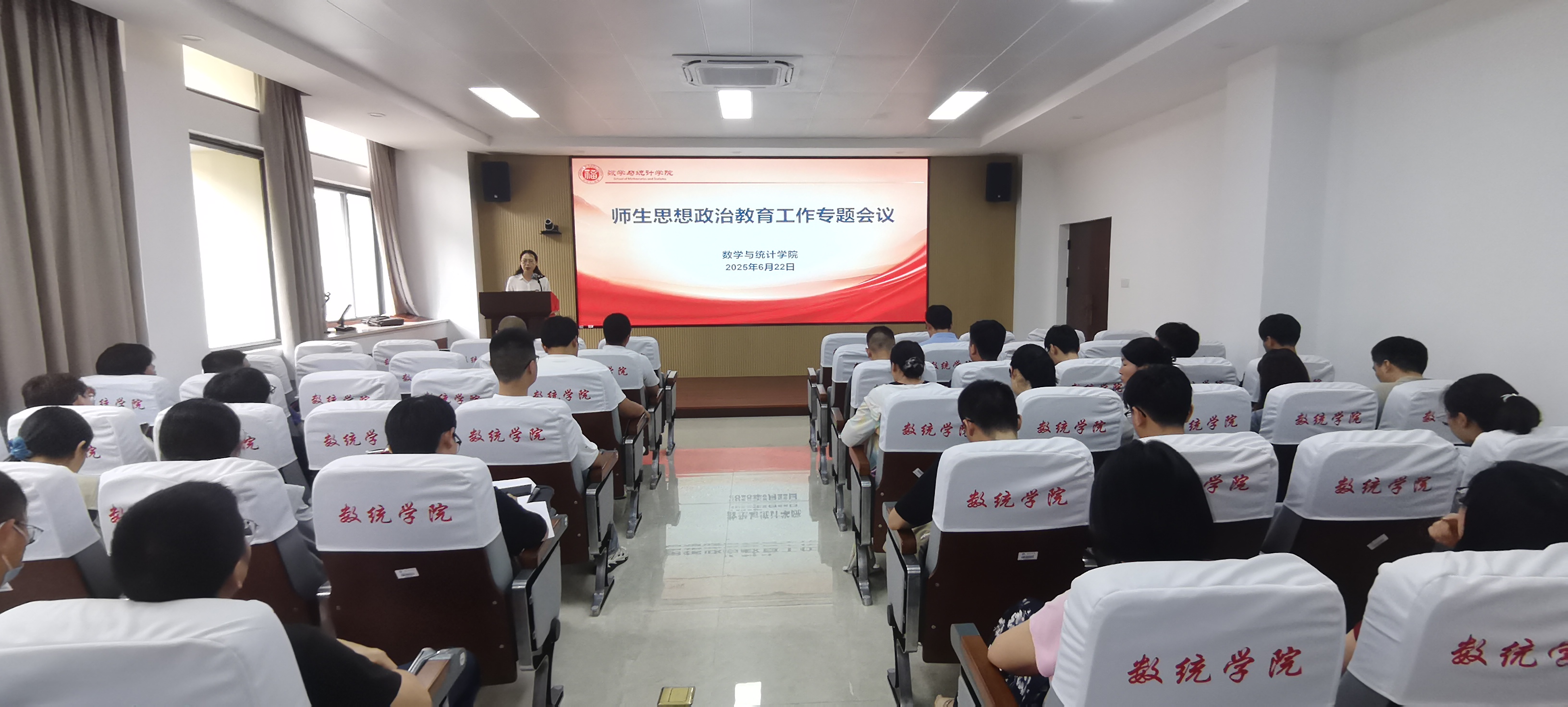 6月22日下午,数统学院在院208报告厅召开师生思想政治教育工作专题会议。学院领导班子成员、党委委员、纪委委员、院长助理、师生党支部书记和支部委员参加了会议。会议由学院党委书记郑世珠主持。