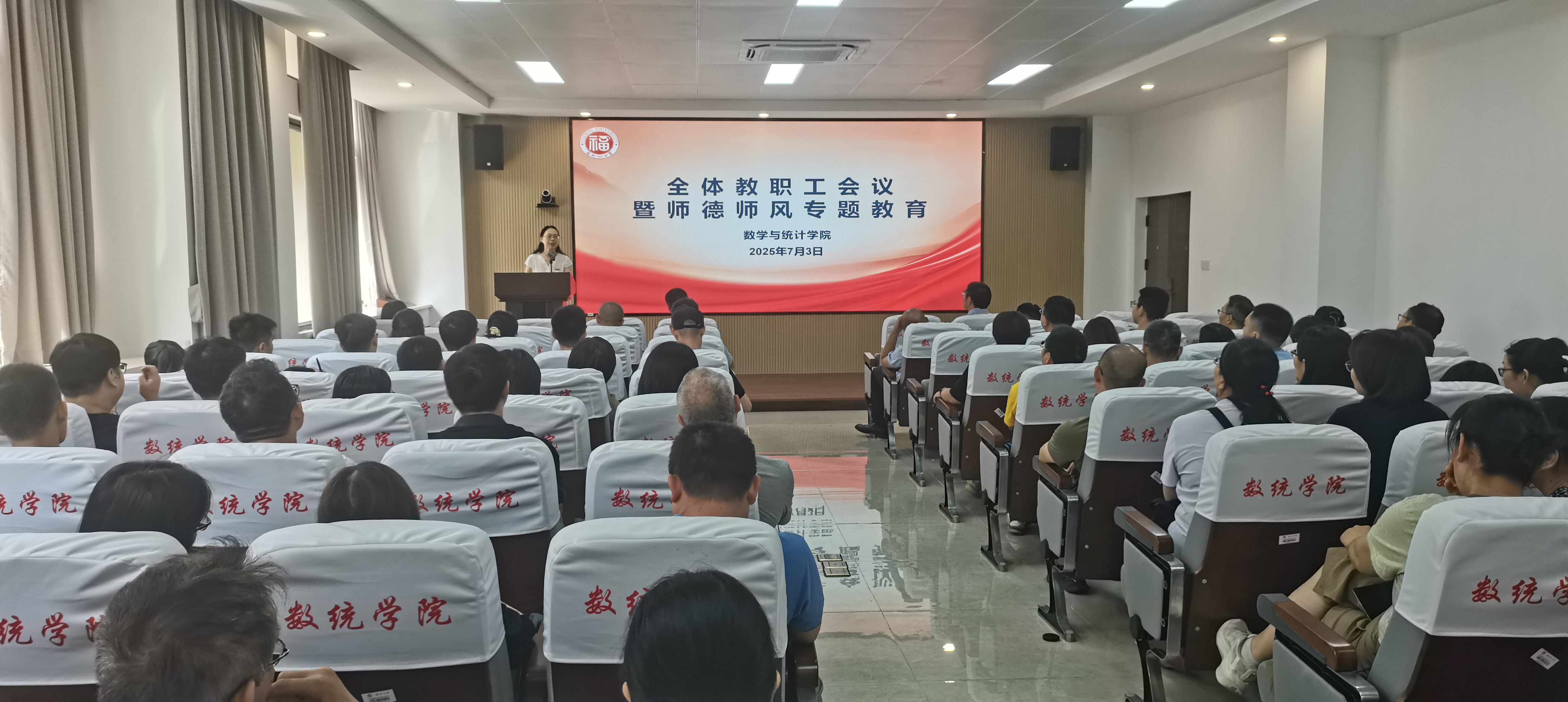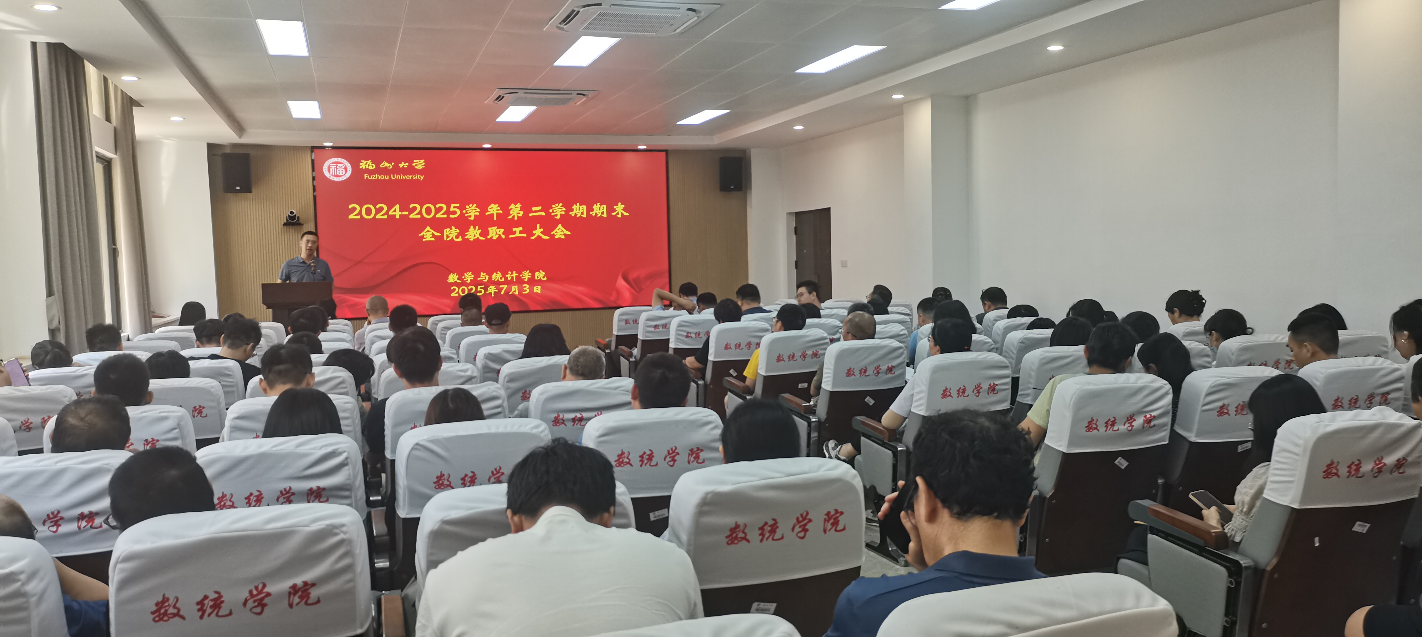 7月3日下午,数统学院在院208报告厅召开2024-2025学年春季学期期末教职工大会。全院教职工参加,会议由学院党委书记郑世珠主持。