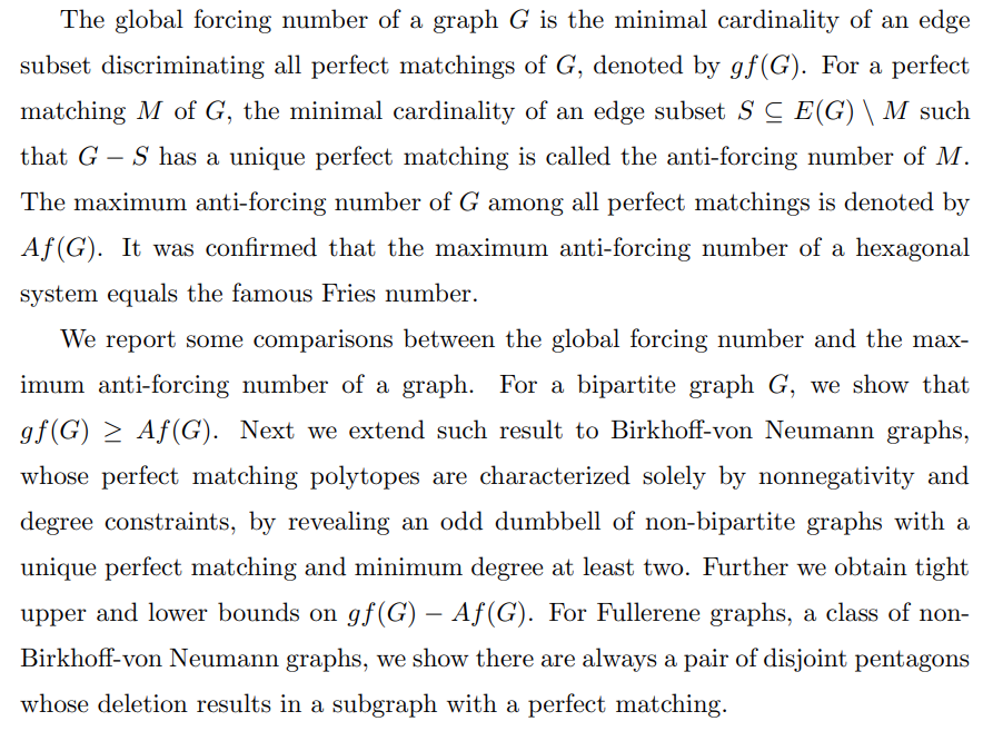 报告题目:Global forcing number maximum anti-forcing number and Birkhoff-von Neumann graphs