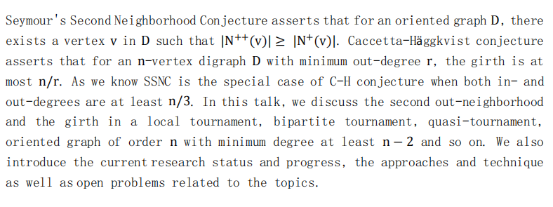 报告题目:Onthe second out-neighborhood and the girthof digraphs