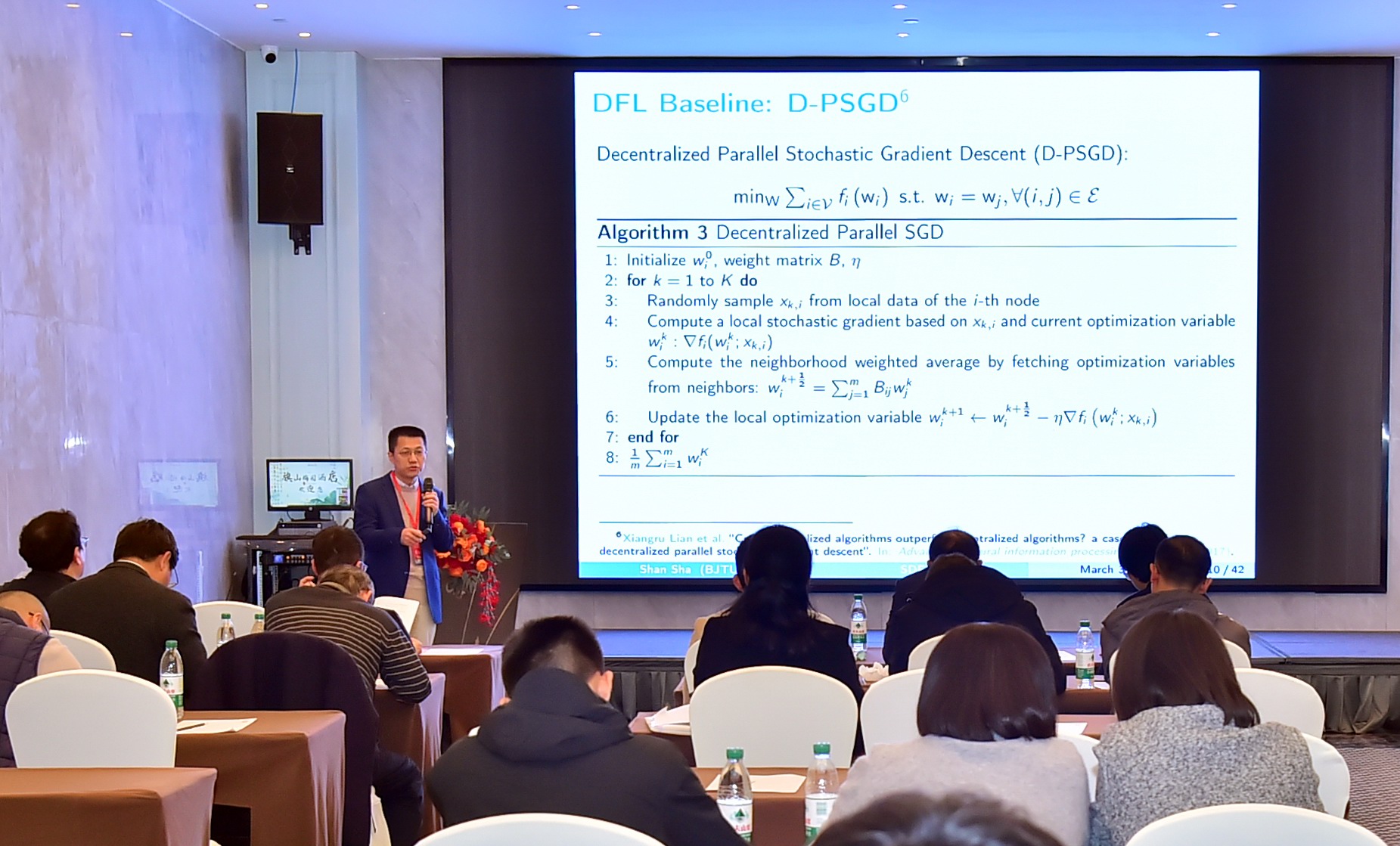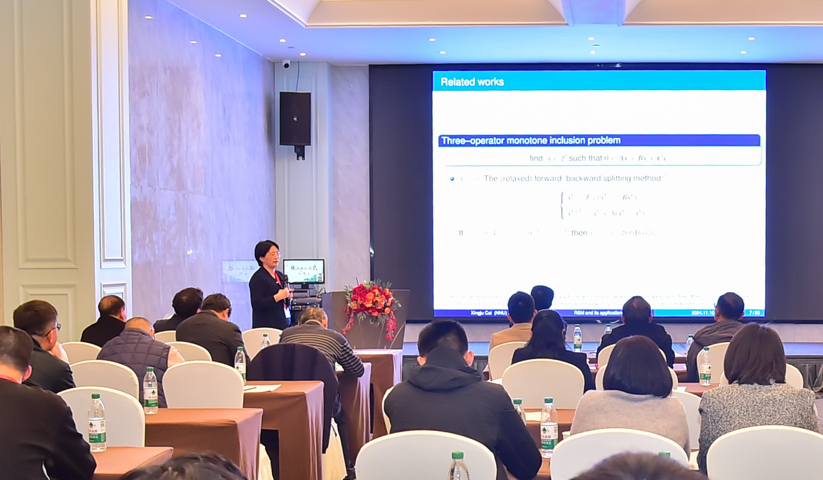 会议期间,戴彧虹研究员、孔令臣教授、蔡邢菊教授分别作题为《整数规划若干理论与应用进展》、《Sparse Decentralized Federated Learning》、《Regularized splitting method for three operators inclusion problems of “two maximal monotone + one cocoercive” and its applications》的学术报告。