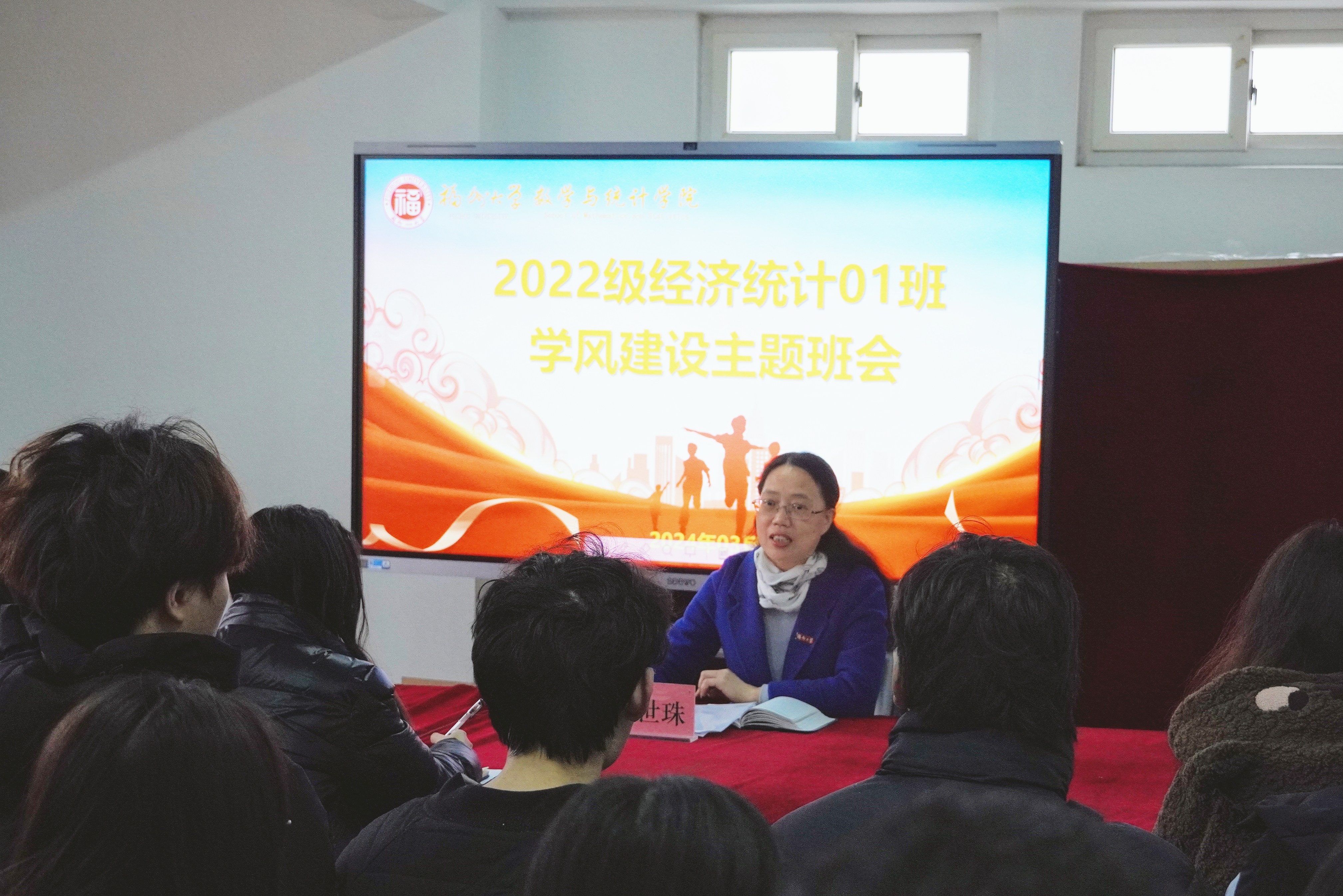 3月14日下午,2022级经济统计学班级在生活区31栋4楼学生一站式社区活动室召开学风建设主题班会,学院党委郑世珠书记作为该班级的班主任参加了本次班会,与同学们共话青年成长。
