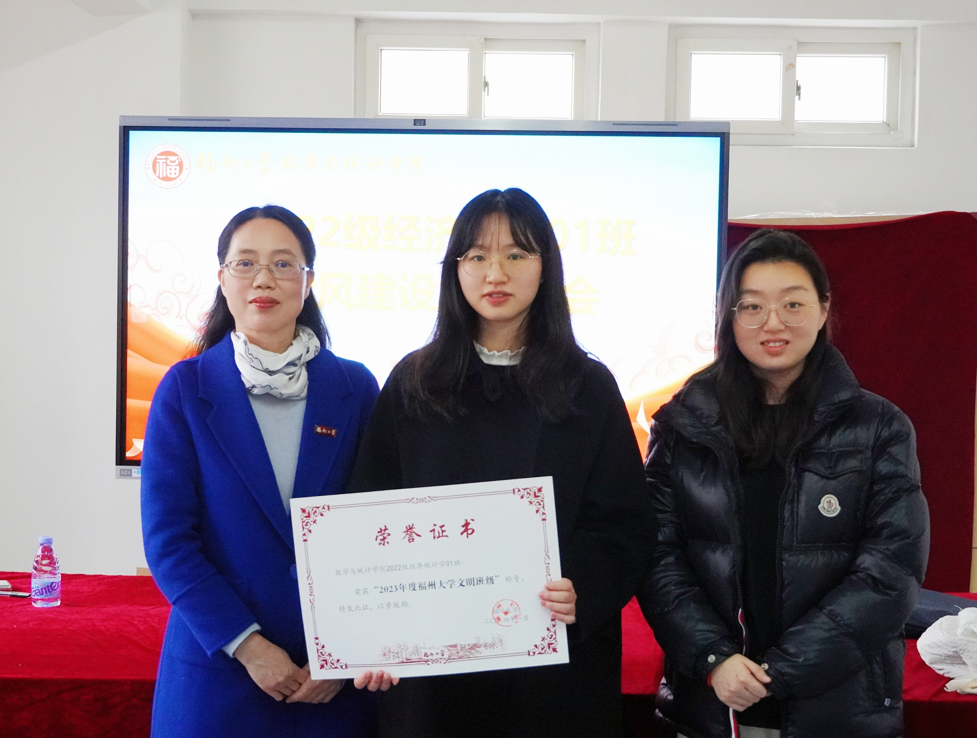 最后,郑世珠书记和辅导员舒婧妍老师,向2022级经济统计学班级获评“2023年度寸止挑战