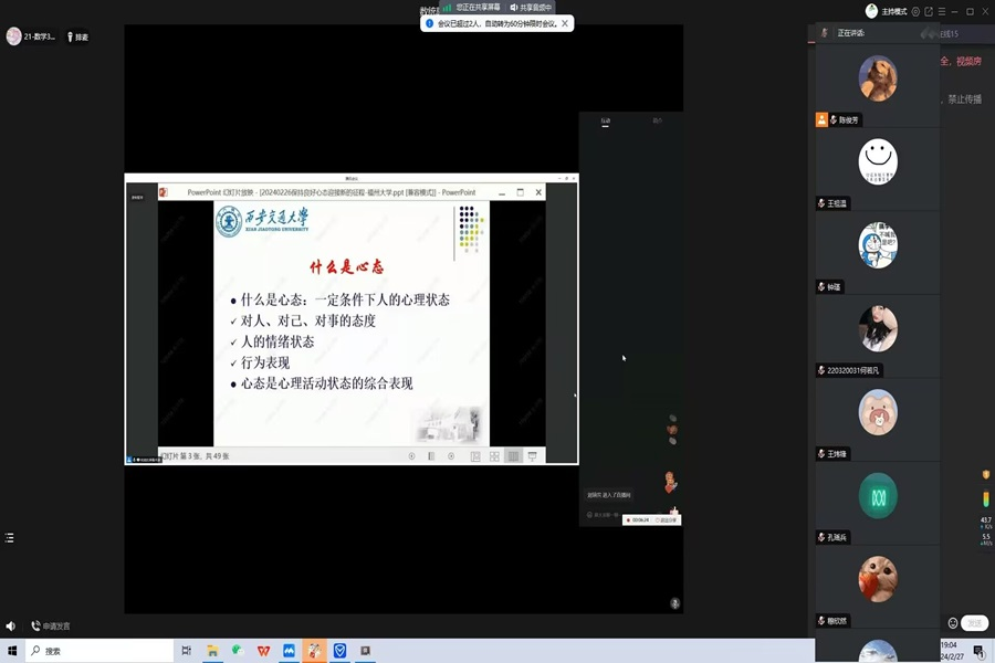 2024年春季开学心理第一课《保持良好心态,迎接新的征程》。此次讲座由西安交通大学学生心理发展指导中心主任姚斌教授主讲。