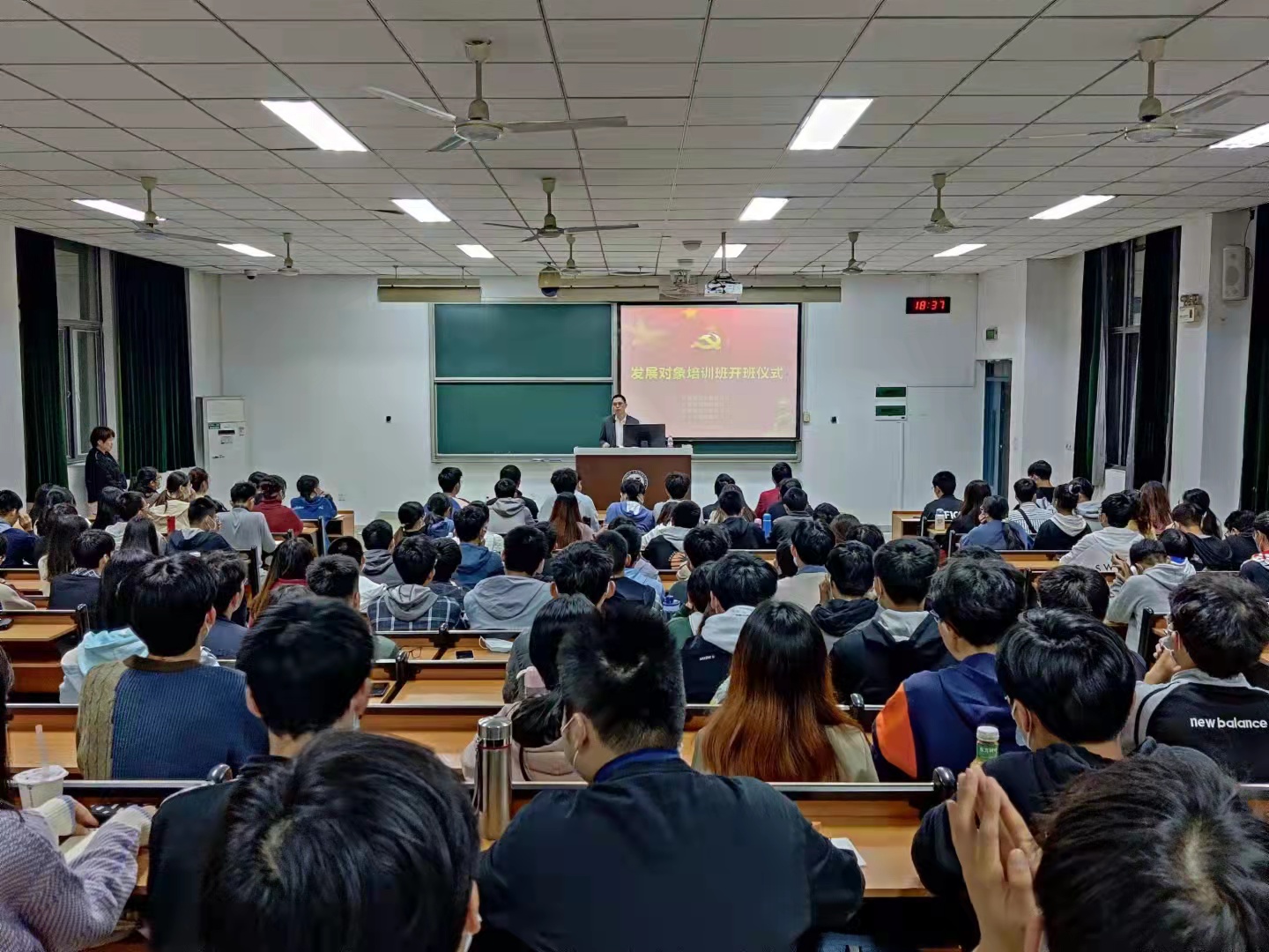 、计算机与大数据学院、紫金地质与矿业学院、外国语学院联合举办的发展对象培训班开班仪式暨第一讲主题党课“学好党章,争做合格共产党员”专题党课在文2-205教室顺利举办。