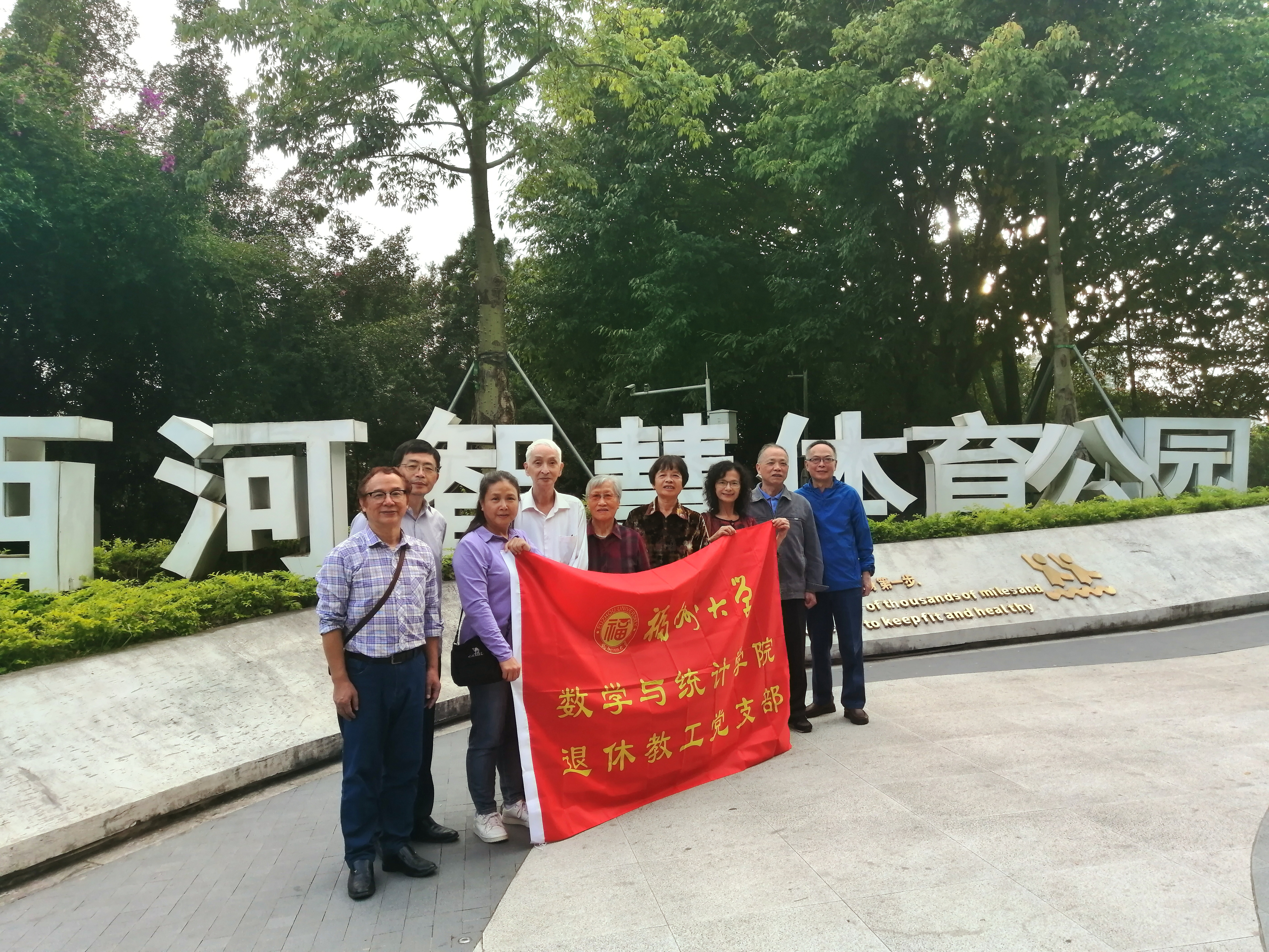 退休教工党支部,组织党员到福州市洪山镇西河智慧体育公园开展“健康徒步走”活动。