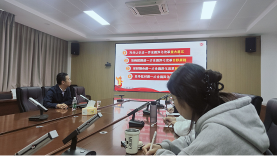 刘勇进院长以“紧扣中国式现代化主题进一步全面深化改革”为主线,结合自身学习体会,阐述了充分认识进一步全面深化改革的重要意义,充分认识进一步全面深化改革的总目标和重大原则,深刻领会进一步全面深化改革的系统部署,以及坚持党对进一步全面深化改革的全面领导,对党的二十届三中全会精神作了全面解读。