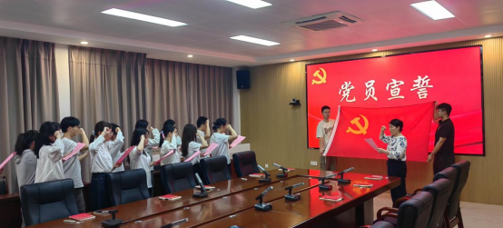 此次入党宣誓仪式,不仅是对新党员的一次深刻党性教育,也是对全体党员的一次精神洗礼。入党誓词虽不及百字,却字字千钧,凝聚着共产党人的政治信仰与精神追求。相信在鲜红党旗的指引下,数统学院全体新发展党员定会牢记誓言、恪守承诺,将入党初心转化为奋进动力,在新时代新征程上踔厉奋发、勇毅前行,为党旗增辉、为党徽添彩。