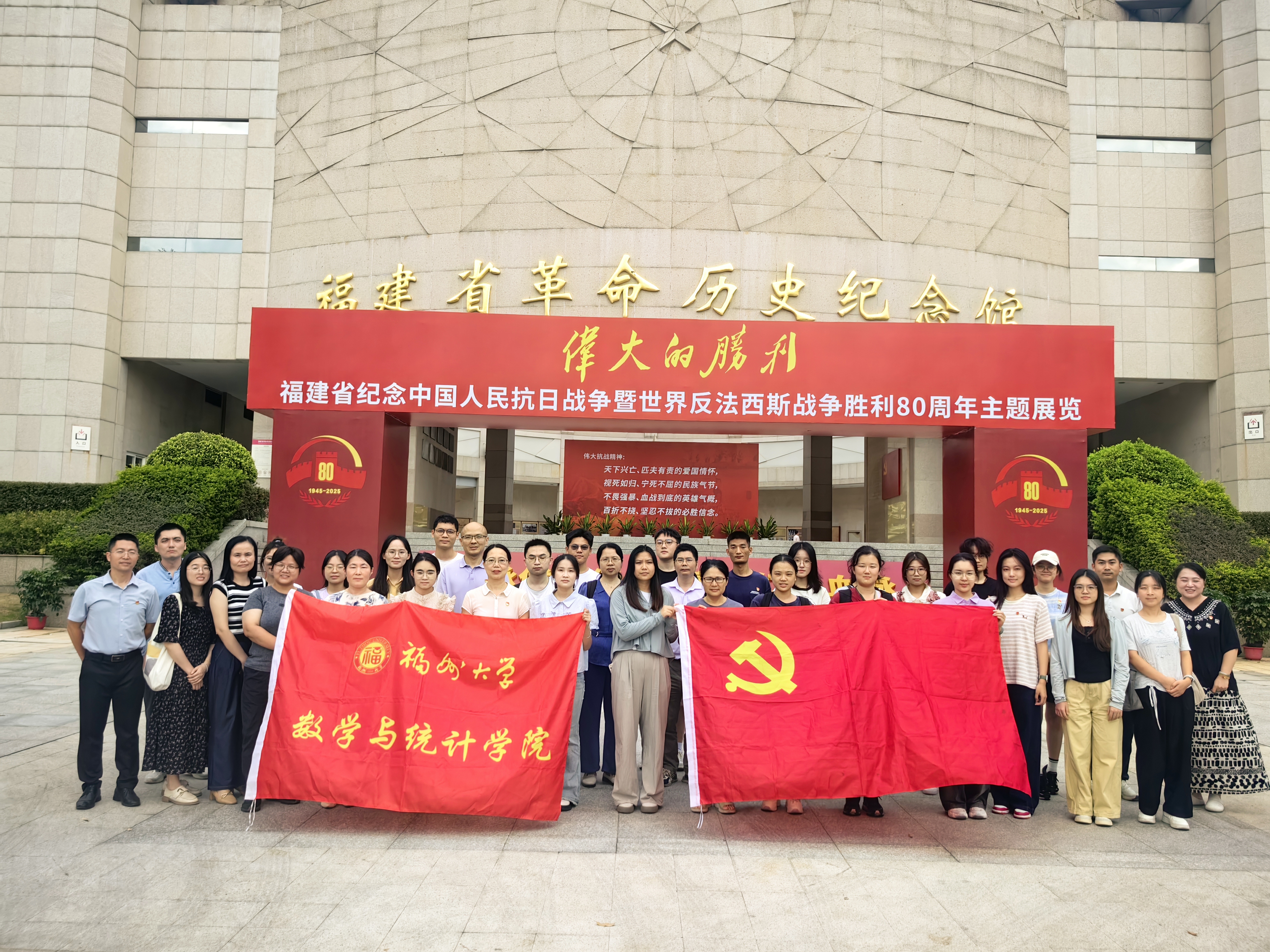 10月15日下午,数统学院党委组织开展主题党日活动,前往福建省革命历史纪念馆参观“伟大的胜利——福建省纪念中国人民抗日战争暨世界反法西斯战争胜利80周年主题展览”。 学院党委委员、师生党支部书记、党员代表、青年教师等40余人参加。