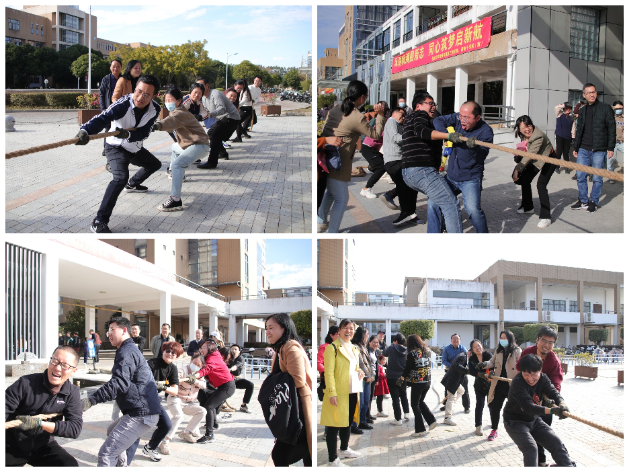 本次趣味运动会由5个个人项目和1个团队项目组成。“龙腾虎跃”“龙升鼎成”“龙年中福运”“龙飞凤舞”等项目角逐激烈,参赛选手热情高涨,你追我赶,赛出了友谊、欢乐和气氛;团队项目拔河比赛,充分展示出全体教职工与时偕行和敢于拼搏的良好状态。活动在阵阵喝彩和欢声笑语中圆满结束。
