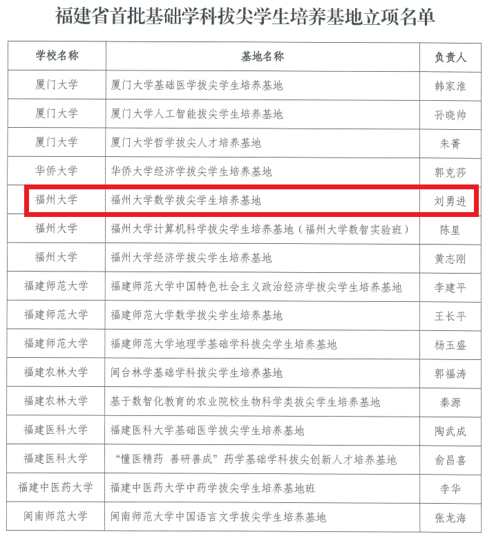 近日,福建省教育厅公布首批基础学科拔尖学生培养基地立项名单,全省共确立16个基地。