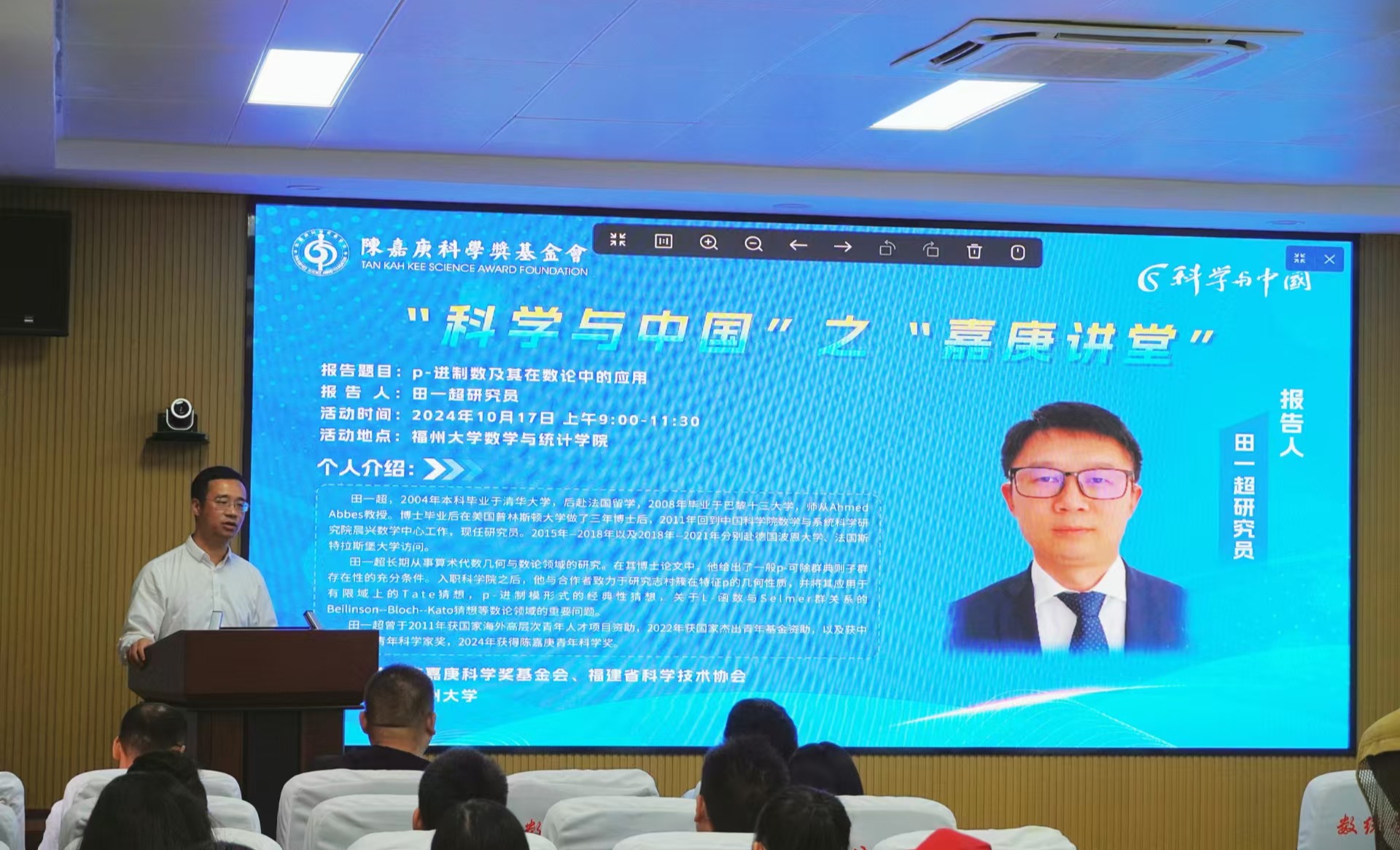数统学院208报告厅顺利举行。中国科学院学部工作局综合处业务主管王宏伟、福建省科协国际联络部(院士办)副部长纪港华、寸止挑战