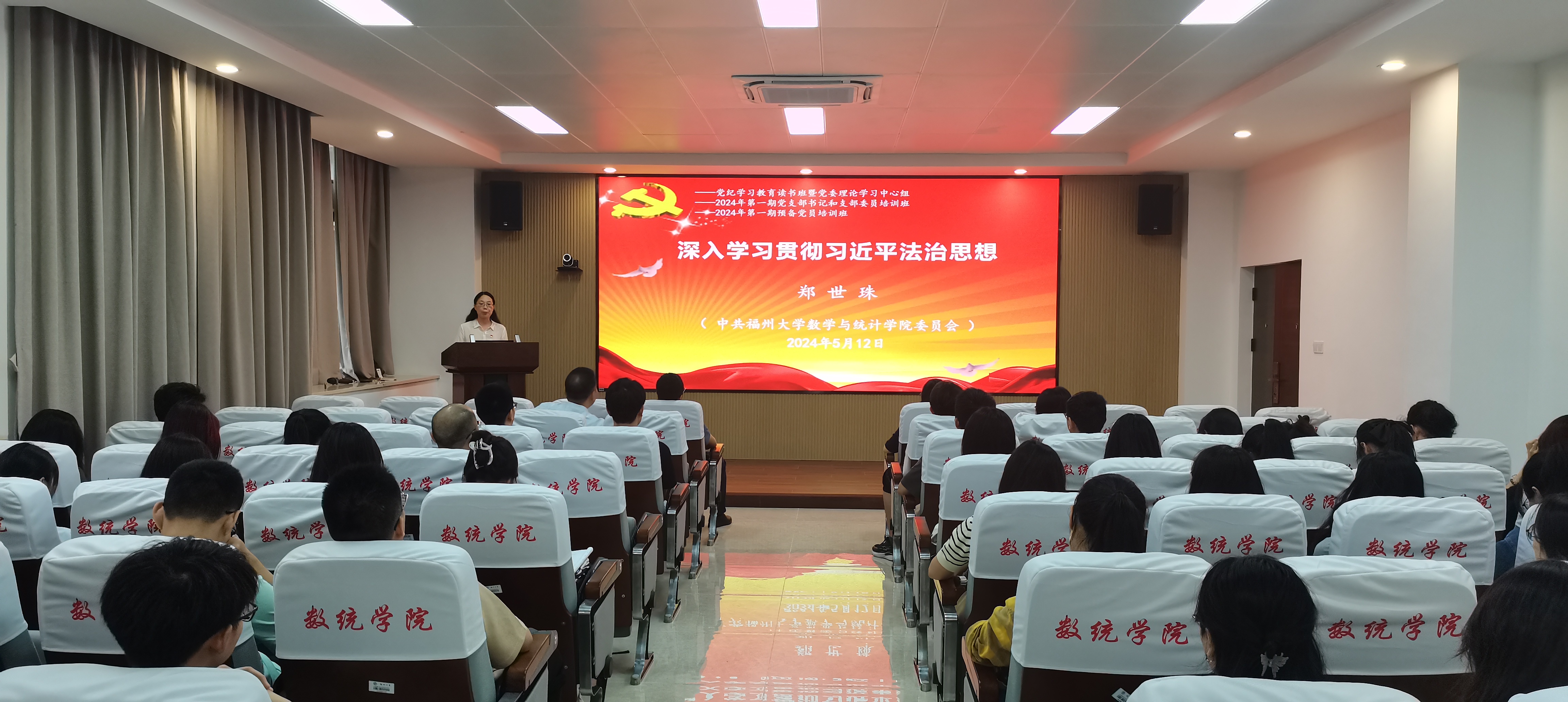 根据数统学院党纪学习教育实施方案的总体安排,5月12日下午,学院举行党纪学习教育读书班第二次集中学习暨党委中心组(扩大)学习,学院党政班子成员、党委理论学习中心组成员、师生党支部书记和各党支部支委参加了集中学习。