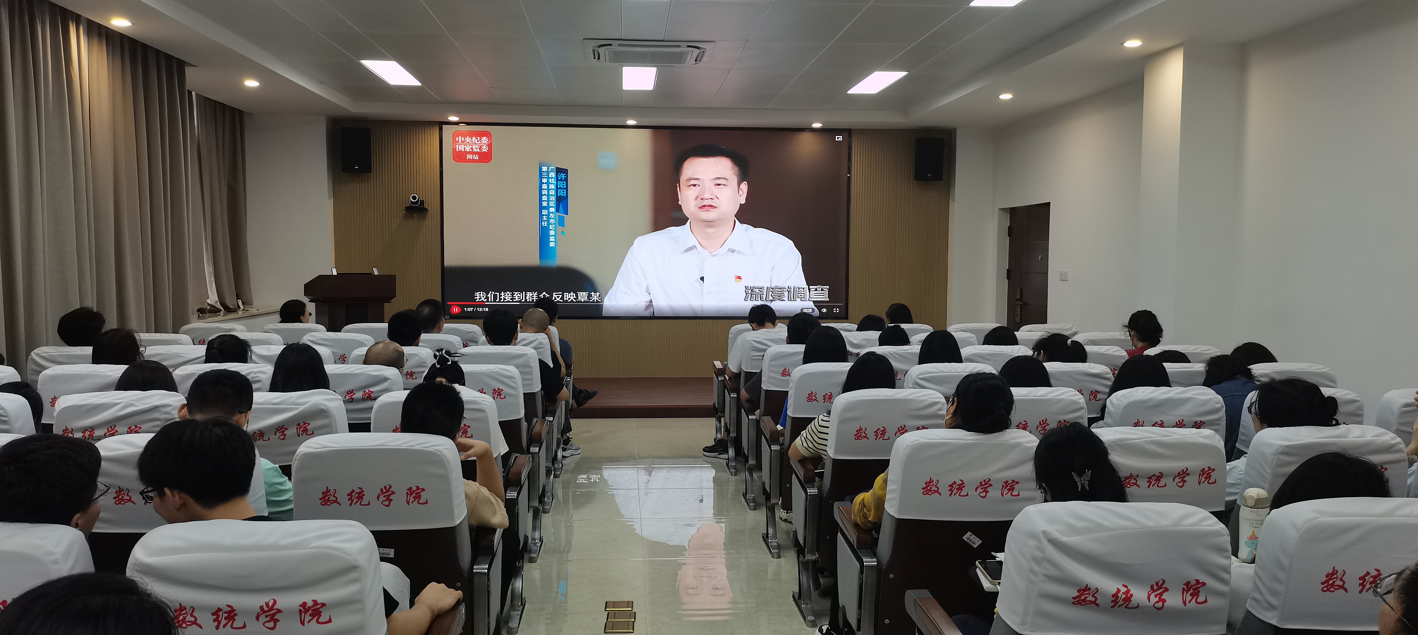 根据数统学院党纪学习教育实施方案的总体安排,5月12日下午,学院组织集中观看党纪警示教育片活动,学院党政班子成员、党委理论学习中心组成员、师生党支部书记和各党支部支委参加了本次警示教育。