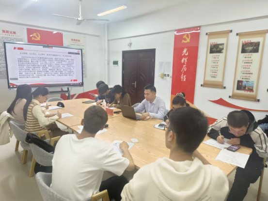 4月27日晚,学院党委沈庆斌副书记在35号楼“一站式”共享活动室,为学院2025年春季入党积极分子培训班及所联系学生党支部讲授专题党课(思政课)。