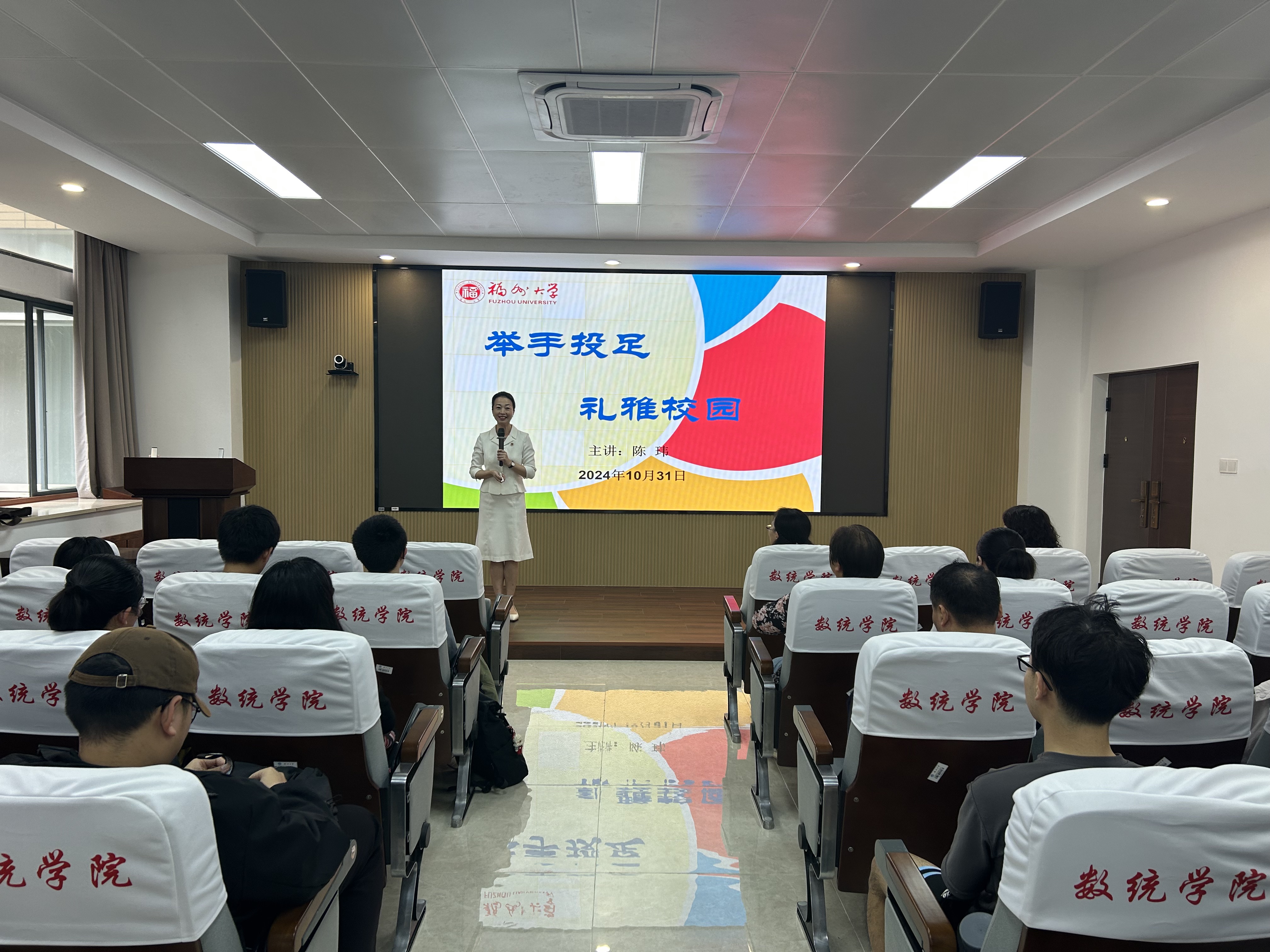 10月31日,数统学院在院208报告厅,举行“举手投足,礼雅校园”文明礼仪专题讲座,旨在大力弘扬中华传统文明礼仪,切实提高学院师生礼仪素养,深化服务师生作风建设,展现学院精神风貌。本次讲座邀请了教育部全国核心能力礼仪指导师、高级礼仪师陈玮老师授课,学院师生70余人参加了讲座。