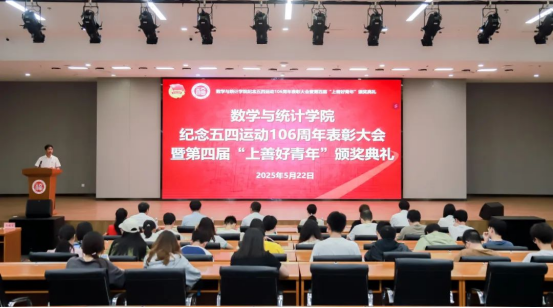 为弘扬“五四”爱国主义精神,激励广大数统学子勇立时代潮头、赓续红色基因,充分发挥先进典型的引领示范效应,引导青年学子勇担时代赋予的使命,5月22日晚,数学与统计学院在旗山校区晋江楼报告厅隆重举行2025年纪念五四运动106周年表彰大会暨第四届“上善好青年”颁奖典礼。