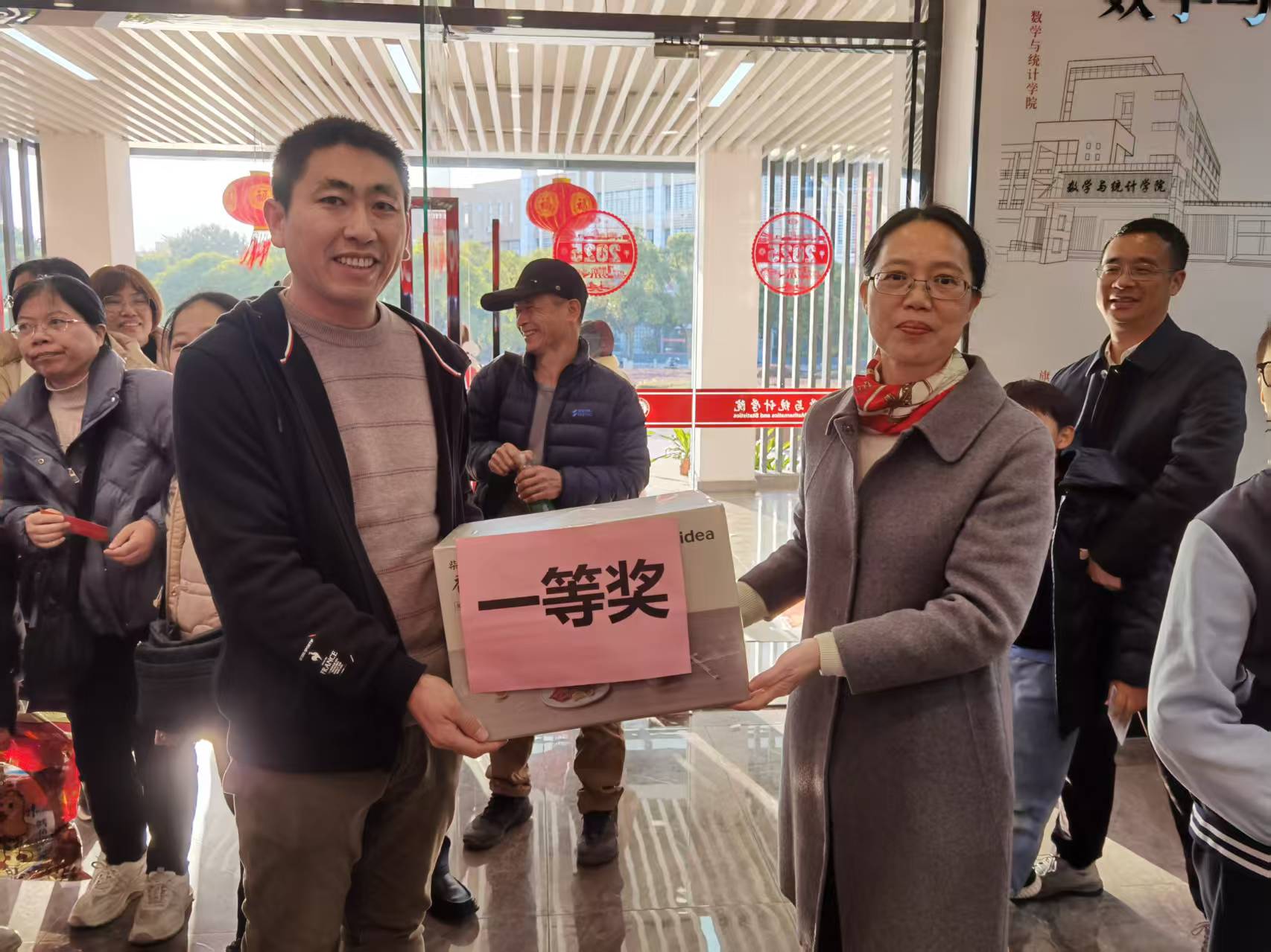 1月17日下午,数统学院分工会在学院一楼大厅成功举办了“欢趣游园 共启新篇”迎新春趣味运动会。本次活动精心设置了新年拔头筹(拔河)、夹球跑两项团体赛和滚滚乐、套小黄鸭、手脚并用闯关、投壶、丢沙包等个人赛多项趣味游戏;并按照参赛成绩都设置了相应的奖品。